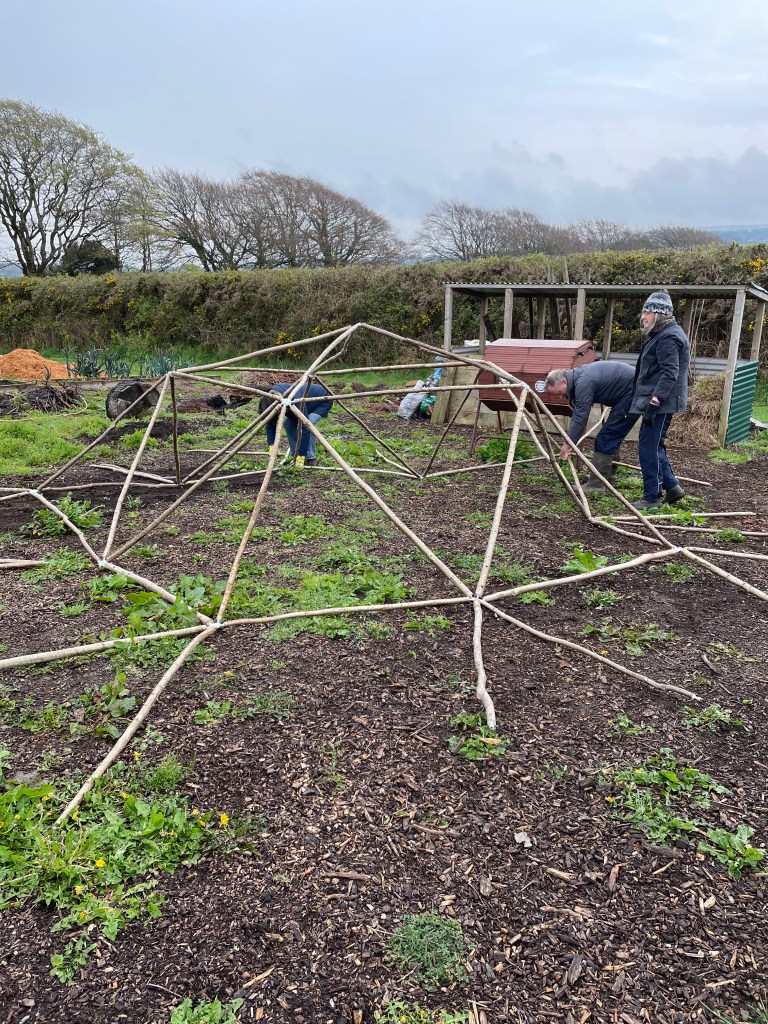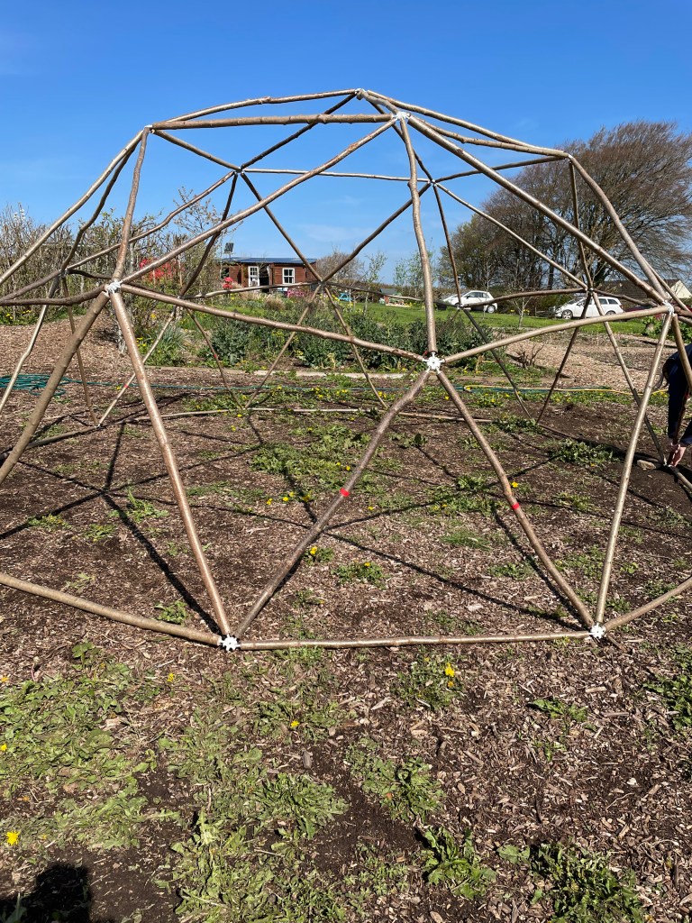 The first layer was easy!Then a few more people got involved, and things started to get complicated!Then the ‘Sisterhood’ got together and put the dome up in no time at all!It adds a bit of interest in the garden, it’s going to look lovely when it’s all filled up with plants.
